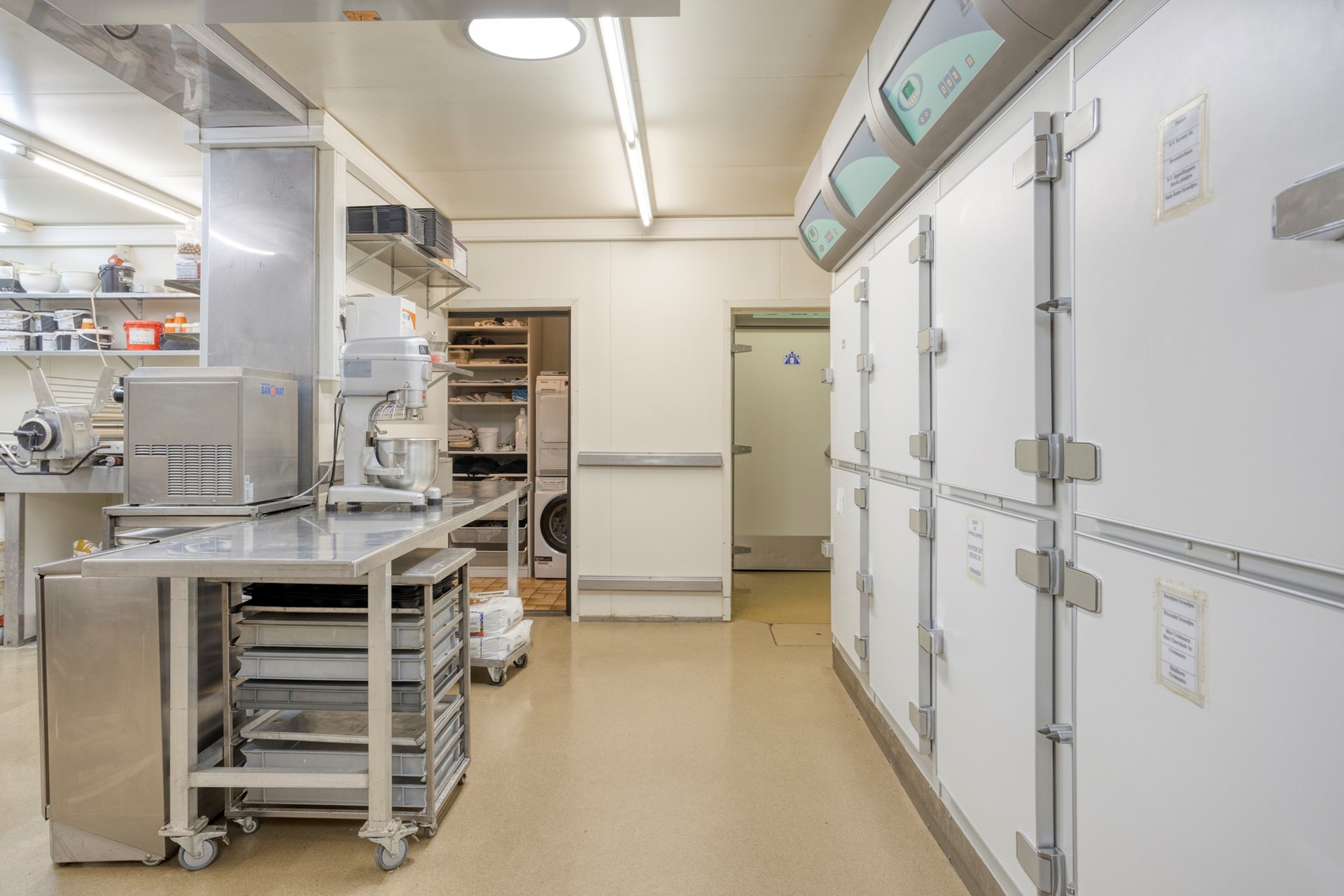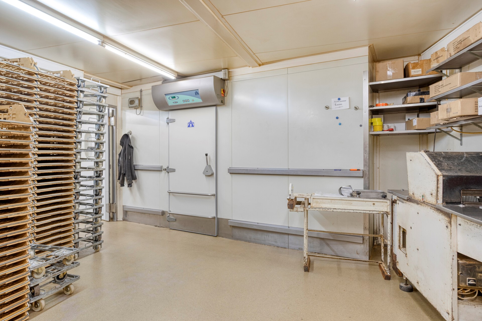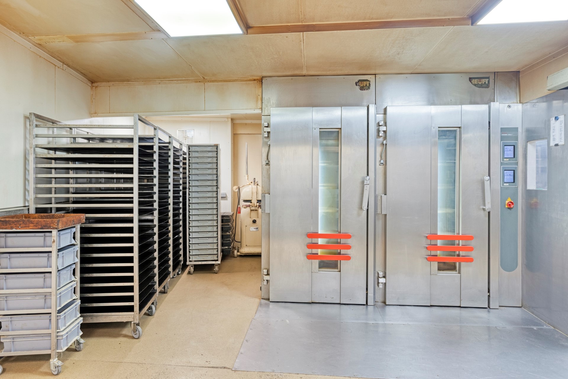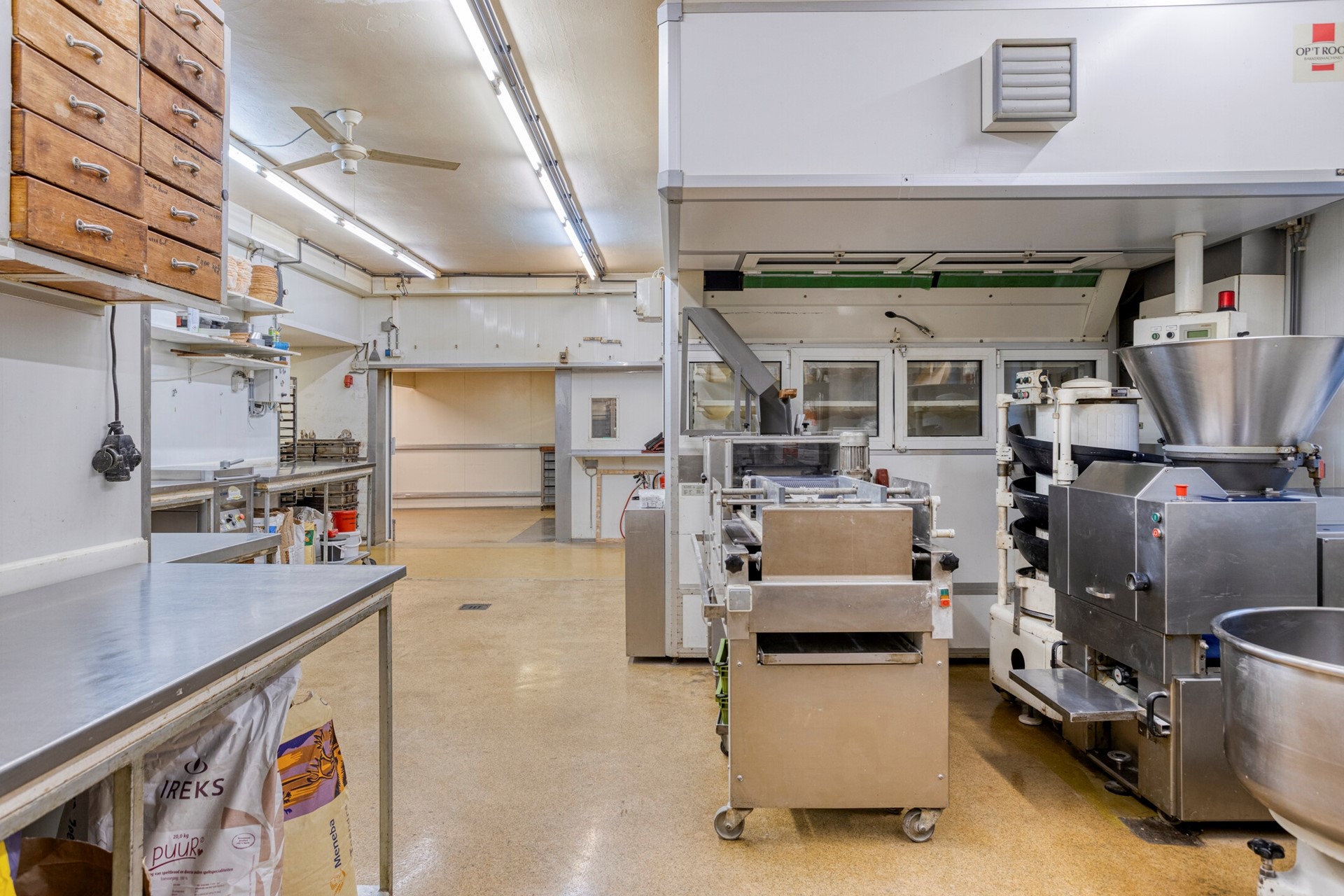 • Entree aan de Prinsenpolderstraat met hierachter de winkel. Direct achter deze winkel is een kantine met kantoorruimte en een keukenblok. Vanuit deze ruimte is de interne parkeerplaats bereikbaar waar een 2-tal auto’s kunnen parkeren naast elkaar. Een 2-tal sectionaldeuren van de parkeerplaats komen uit in de Dreef. Handig vanuit deze bedrijfsruimte is, dat men hier kan laden en lossen zonder het doorgaande verkeer te hinderen. Aan de Prinsenpolderstraat is ook nog een dubbele toegangsdeur naar een bedrijfsruimte om te laden en lossen. In de overige bedrijfsruimtes staan o.a. meerdere koelingen, ovens en apparatuur voor het maken van deeg, brood en een speciale gekoelde tafel voor het maken van gebak/taarten. Bij de parkeerplaats is ook de trapopgang naar het penthouse met hiernaast een open lift.