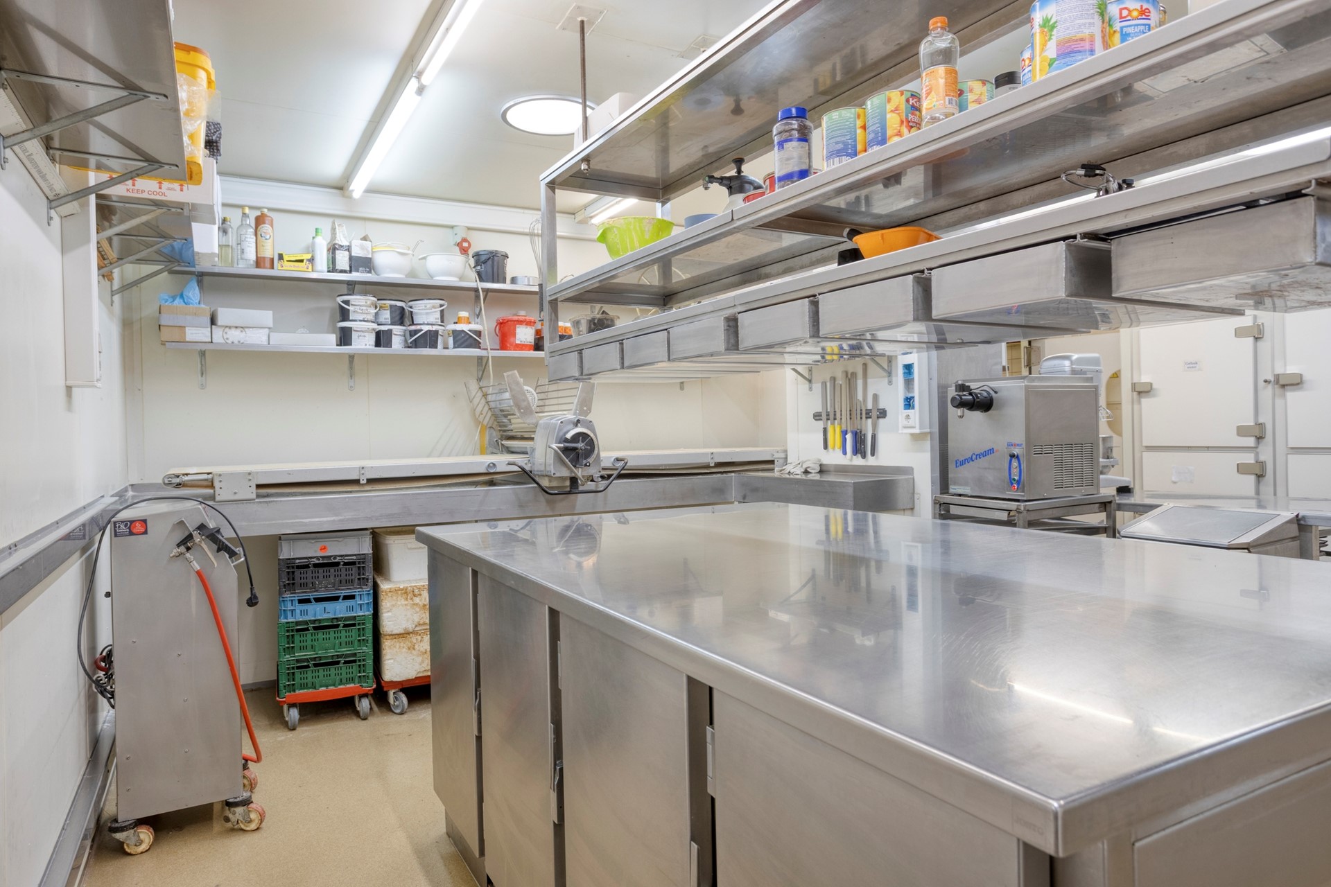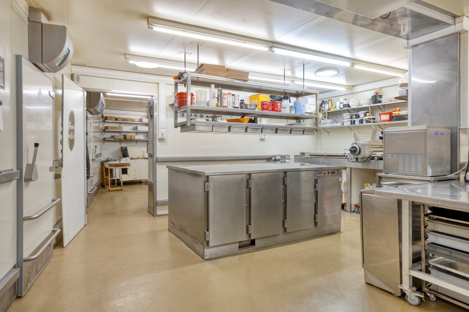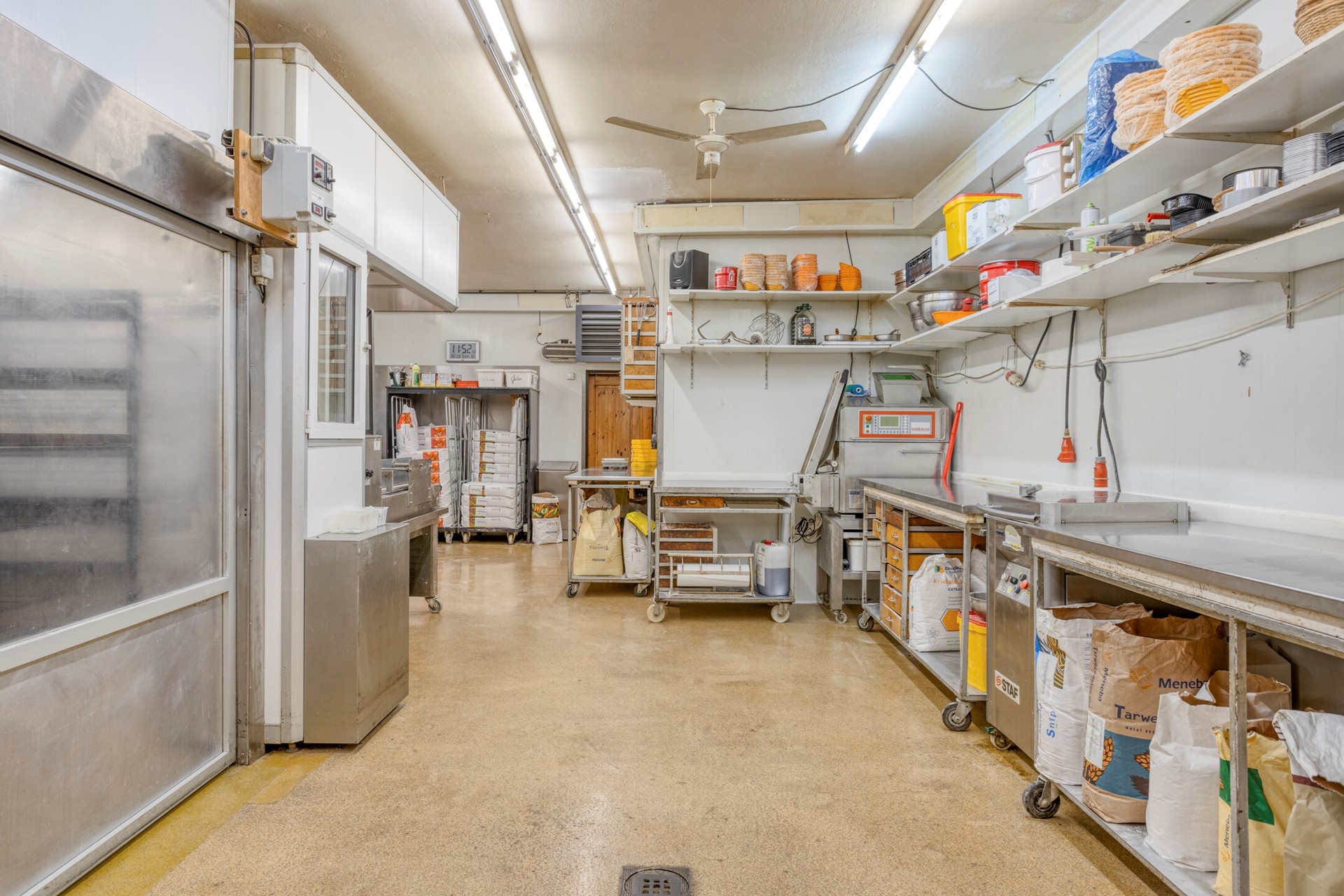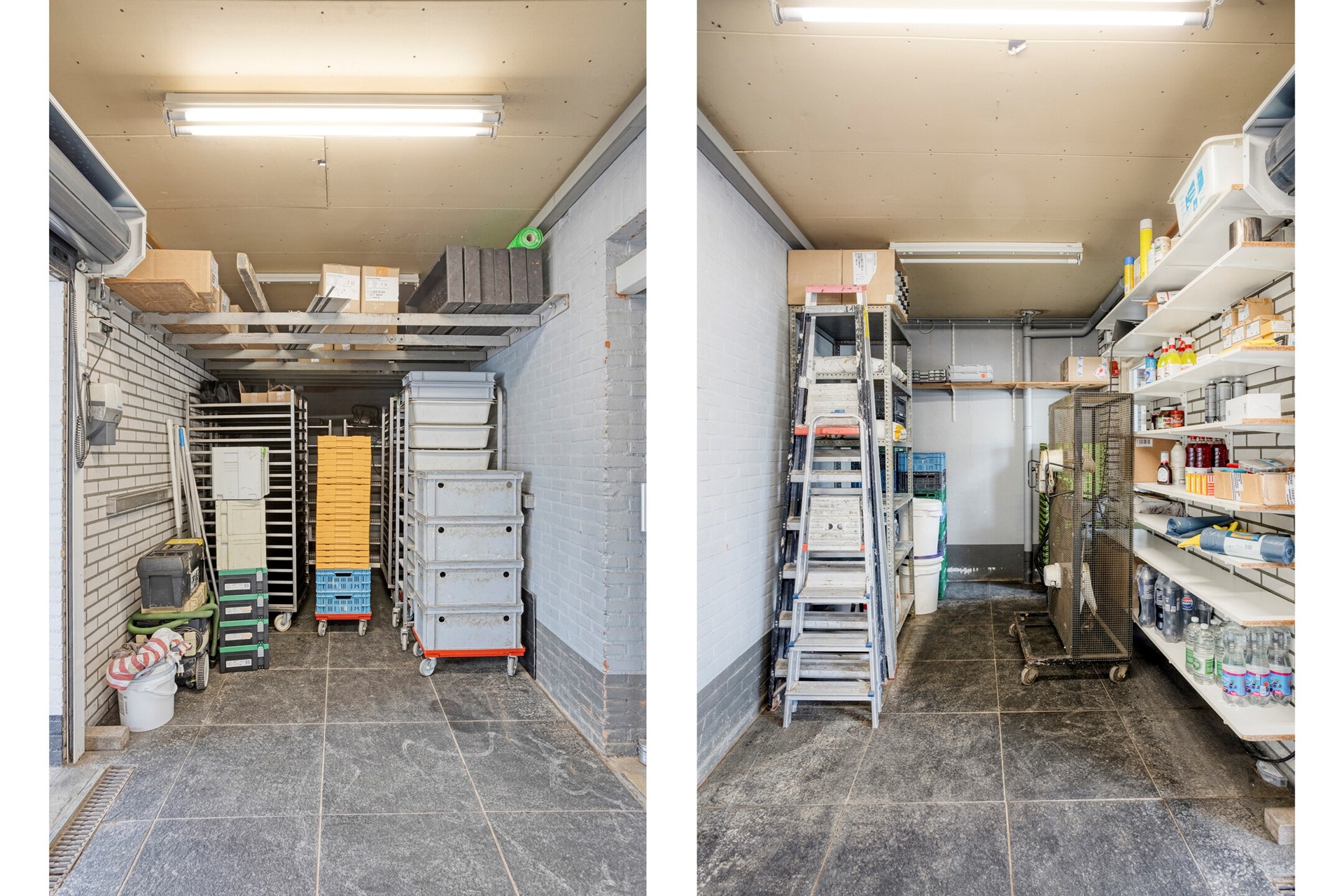 • De ruimte achter de winkel en kantine bestaat uit meerdere opslagruimtes, een toiletruimte en een natte ruimte. De winkel is zowel vanuit een van de bedrijfsruimte direct bereikbaar als vanuit de kantine.